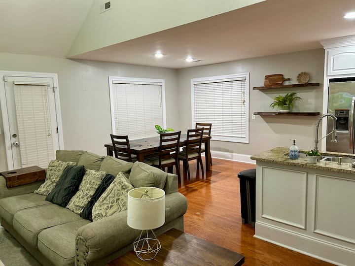 *新規* 手頃な価格、キングベッド、フェンス付き庭