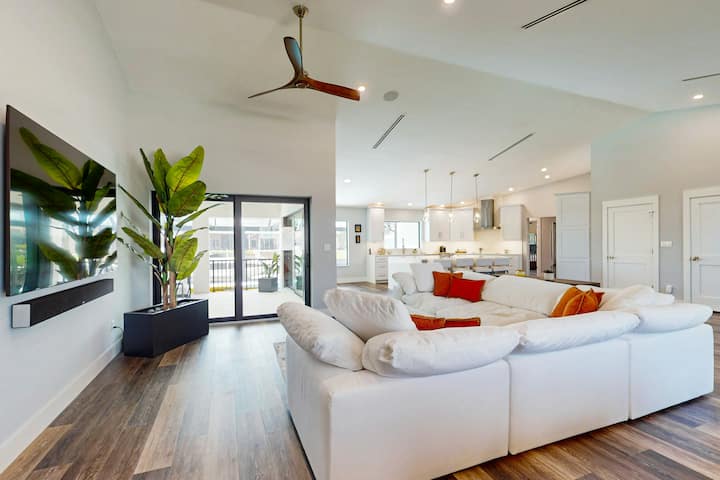 専用プール、スパ、エアコン、洗濯機・乾燥機、Wi-Fiを備えた3寝室の宿泊先