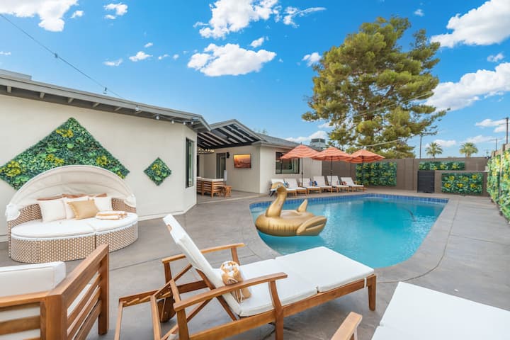 スコッツデール・デザート・ローズへようこそ。アリゾナ州スコッツデールにある、5寝室の素晴らしいリゾートです。シックなデザイナーの手が感じられるモダンな家で、最高級のアメニティ・設備を備え、スコッツデールで最高の食事、ショッピング、エンターテイメントを楽しめる場所にほど近いという他にはないロケーションです。デザート・ローズは、仕事でも、リラックスでも、探索でも、忘れられない滞在をお約束します。