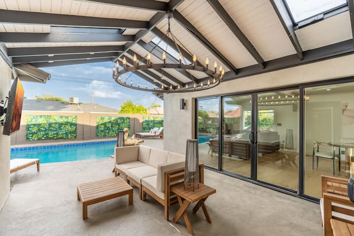 -スタイリッシュなラウンジを備えた温水プールでリラックスし、屋外バーやバーベキューを楽しみましょう。