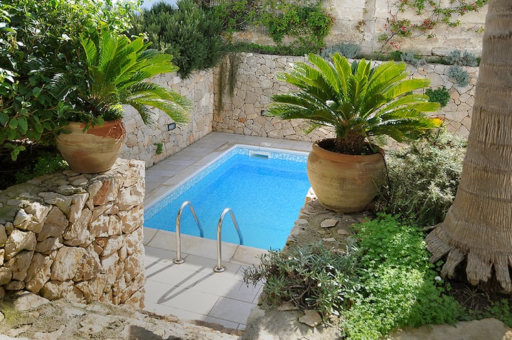 2階建てのフラットとプール