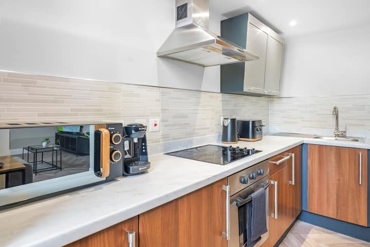 リバプール市内中心部にある新しく改装されたデュプレックスにご宿泊ください。ダブルベッド2台とソファベッド1台、バスルーム2室、Wi-Fi、設備の整ったキッチン、ワークスペースがあり、6名様がご宿泊いただけます。リバプールワン、ワールドミュージアム、ライムストリート駅まで徒歩で行けます。すぐ近くにバーやレストランがあります。セルフチェックイン、近くに安全な駐車場があります。ペット、喫煙、パーティーは禁止です。スタイリッシュな中心部の宿泊先を今すぐ予約しましょう!