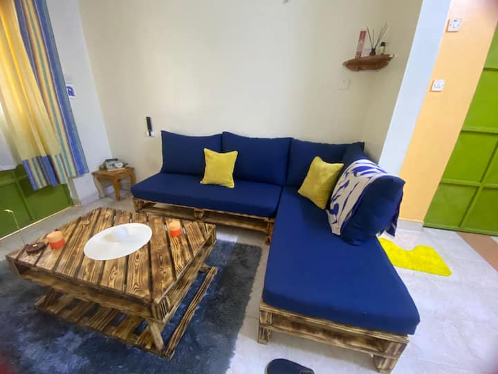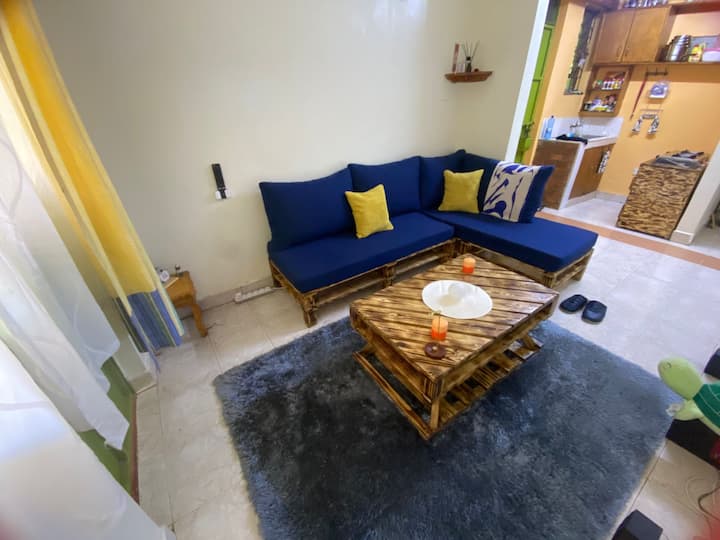 この居心地の良い1ベッドルームアパートでナイロビの本格的な生活を体験してください。ユニークで素朴なパレット家具と本物の地元の雰囲気が特徴です。