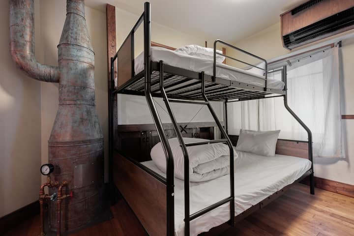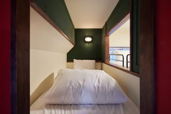 シャワー室、トイレもあるので安心して過ごせます。寝台は2段ベッドとシングルベッドがあるので、快適にお過ごしいただけます。