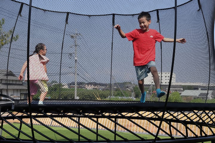 トランポリンは1度に複数人で飛び跳ねることを禁止します。