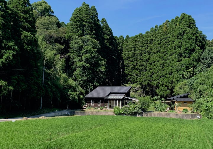 ゲストハウス前の田んぼで、自給用の米づくりをしています。房総の里山で田舎暮らし体験を感じて頂ければ嬉しいです。