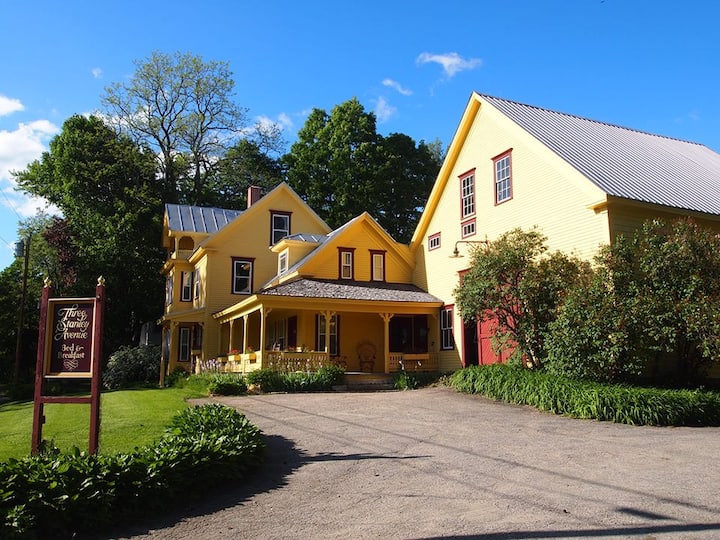 Danさんは、メイン州南部の若いスキーヤーとして45年以上前にこの地域に来ました。 1972年にレストラン「One Stanley Avenue」をオープンしました。 数年後、隣の家が売りに来たとき、Danさんはそれを購入し、B&Bにするために改装しました。彼は適切なスリー・スタンレー・アベニューのB&Bと名付けました。 Susanさんは約22年前にDanさんに加わり、一緒にビクトリア朝の農家をゲストに提供して楽しんでいます。