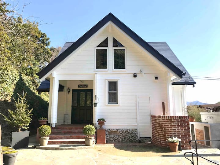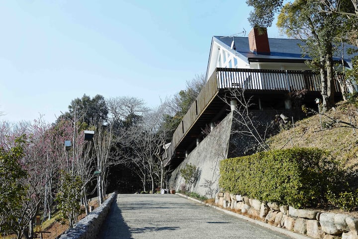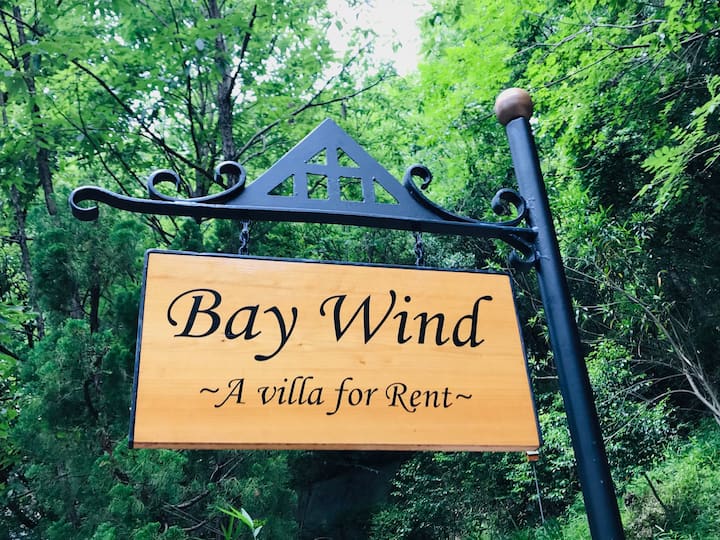 ベイウィンドは、赤い杉の木を使ったスタイリッシュなログハウスです。 自然の森や木々の豊かな香りが漂う隠れた場所にあります。 少し貸切の道を使用すると、ヴィラが見えてきます。 瀬戸内海の素晴らしい景色と快適な潮の音があなたを待っています。