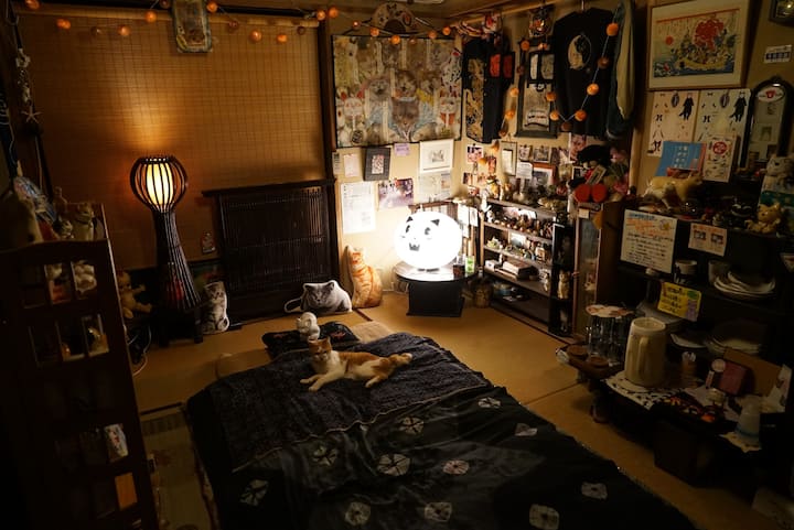 日暮里駅徒歩可/谷中の静寂な古民家の個室/猫コレクション展示*神社有/ホストはアーティスト/飼猫4匹