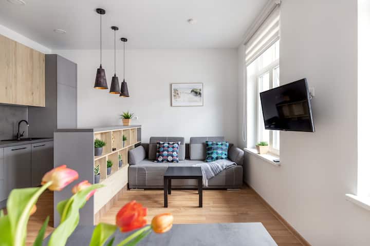 居心地の良い庭付きアパートメント、1ベッドルーム、2バスルーム、Reside Balticによる管理