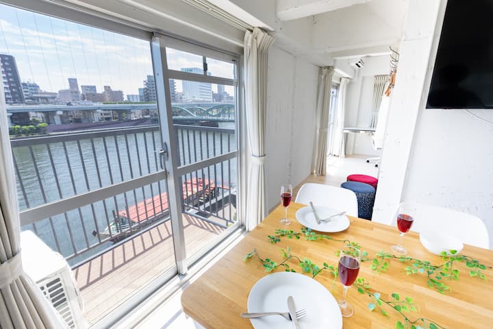 【501】隅田川&スカイツリービュー/浅草駅徒歩5分/蔵前駅徒歩4分/テラス有/最大6名