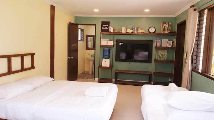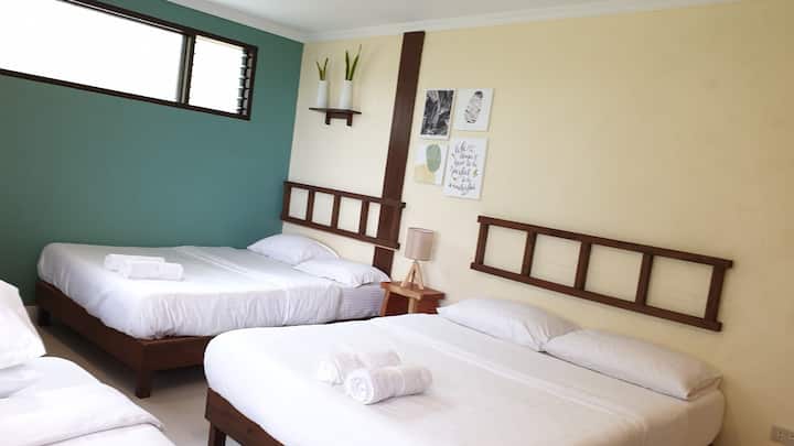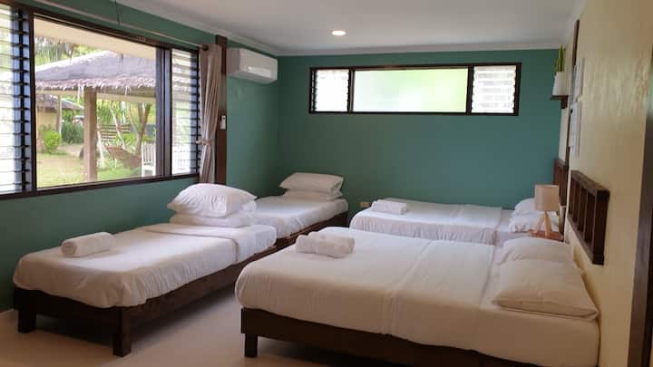 クイーンベッド2、シングルベッド2、ソファベッド1、床置きマットレス1