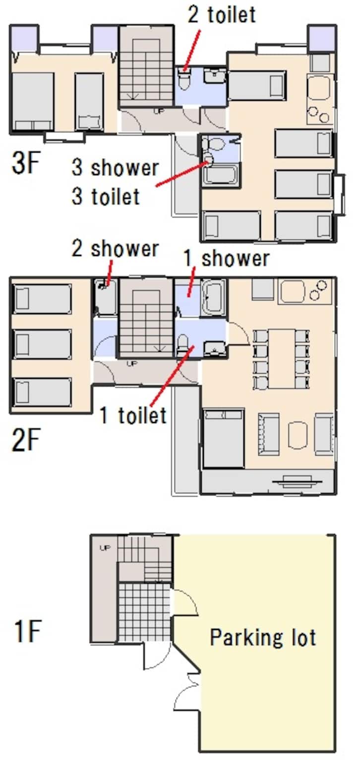 NGK) 駐車場2台/シャワー3 &トイレ3/3LDK/無制限Wifi/長期滞在