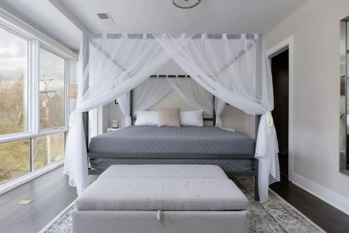 ダウンタウンまで10分、ガレージでゲーム!10人まで宿泊可能!