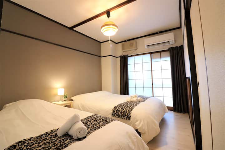 52㎡のお部屋です。 大阪、京都、神戸など、関西観光へのアクセスに最適です。 最大6名まで宿泊可能です。