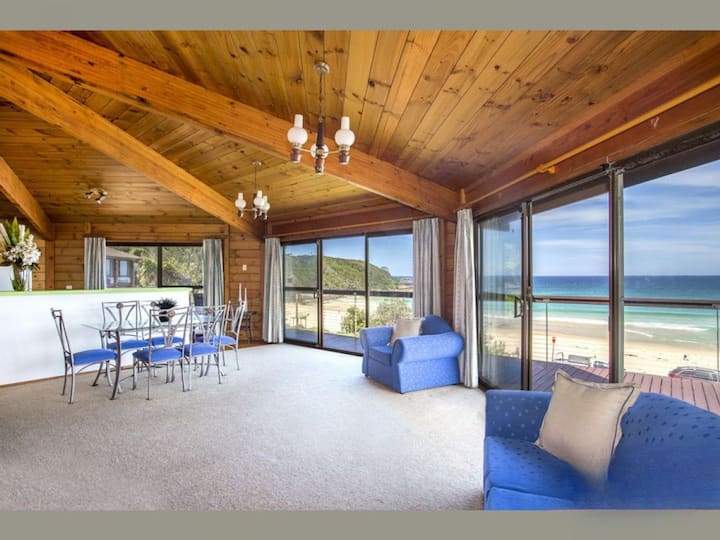 モリームックビーチにある2階建ての3ベッドルームの絶好のビーチフロントコテージで、遮るもののないオーシャンビューとフロントデッキが特徴で、イルカウォッチングに最適です。この宿泊施設では、リネンはご用意しておりませんのでご了承ください。リネンはご持参いただくか、リネンのレンタルサービスの詳細についてはオフィスにお問い合わせください。