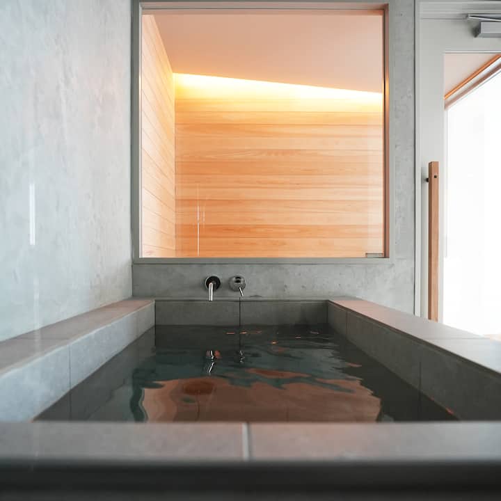 2022年12月に完成した本格フィンランド式ドライサウナ「ホワイトサウナ」をご利用頂けます。隣には肩まで浸かれる石畳の水風呂もご用意してます。ロウリュウ用のアロマオイルのご用意もありますので、ぜひご利用ください!
