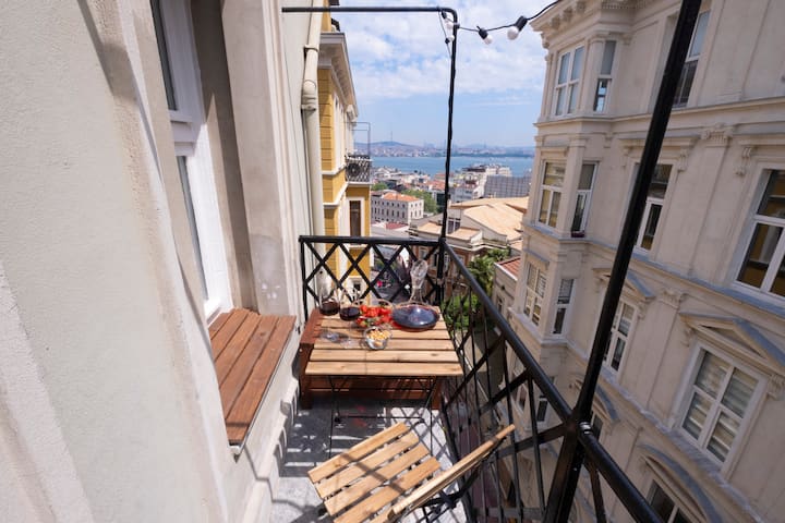 ボスポラス海峡を望む専用バルコニー付きの快適な2寝室アパート