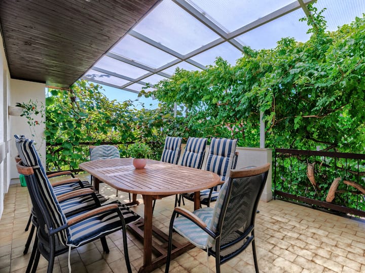 美しい一戸建て「ヴィラ・トニ」、2階建て。ウマグの中心部から500m、静かで日当たりの良い場所にあり、海から800m、ビーチから800mです。プライベート:敷地1,200平方メートル(フェンス付き)、芝生と野生動物がいる美しい庭、屋内階段付きの角張ったプール(10 x 4 m、深さ140 cm、季節ごとの利用可能状況:4月27日~10月12日)、塩電解プール洗浄システム。プールエリアにトイレ、屋外シャワー、テラス(30平方メートル)、庭用家具、バーベキュー。家の中には、インターネット接続、卓球、自転車収納室、洗濯機があります。敷地内に駐車場(3台分)あり。お店、レストラン200 m、バス停1.4 km、砂浜、小石の浜800 m。ゴルフ場(18ホール)10 km、テニス1 km、家からの遊歩道100 m、自転車道150 m。オーナーは若者のグループを受け入れません。騒音に非常に敏感なエリアです。静かで良い行動を期待しています。1階は閉鎖されており、使用されていません。屋外キッチン(4つのセラミックガラスホブホットプレート)。パーティーの開催は禁止されています。