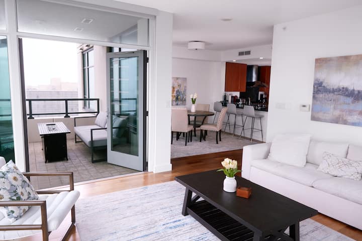プール、ジム、スパ付きの豪華な2寝室オーシャンフェイスアパート