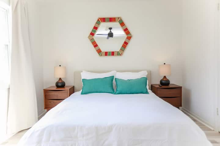 ペットOKです。ペット1匹につき週75ドルです。ペット料金は予約後にお支払いください。各アパートには駐車場が2台分あります。2台以上の場合は、許可をリクエストしてください。(この家にはIHクックトップと対流オーブンがあります)