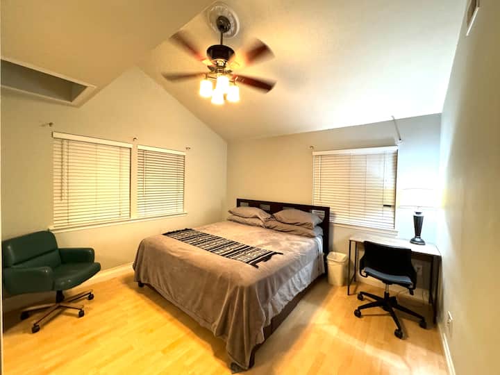 サンノゼ西部にあるキングベッド付きの広い寝室
