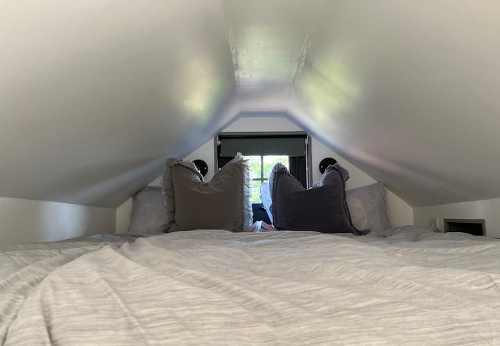 居心地の良い中二階の隠れ家とタンデム自転車を備えたタイニーハウス