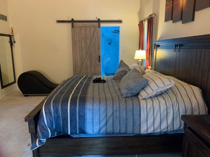 ホテル風のバスルーム付きのゴージャスなマスターベッドルーム