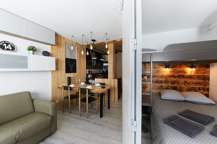 アヴォリアズの歩行者スキーリゾーンにある、居心地の良い2部屋のアパート、マウンテンバイク用のローカル