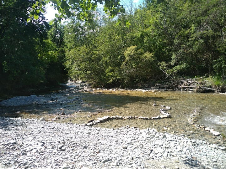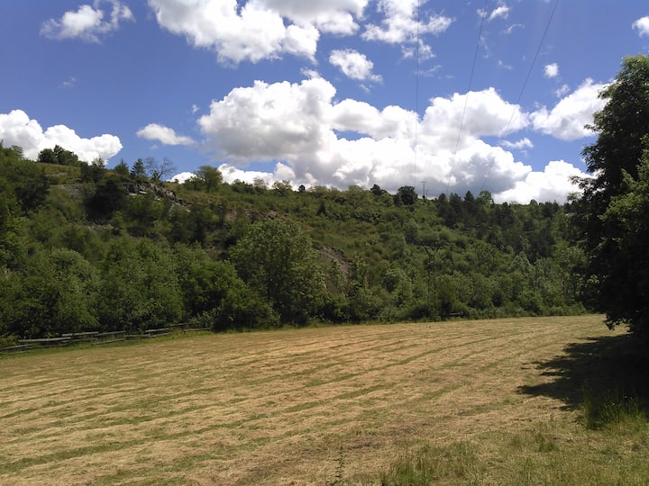 ムーラン・ド・ルクールの川沿いでのキャンプ