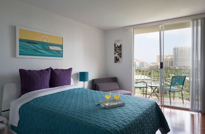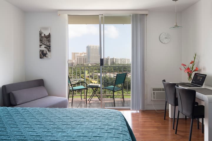 ★ワイキキ・オーシャンビュー・ワンルーム・無料駐車場★ 日本語