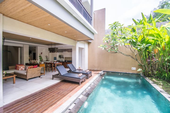 ウブドにあるプライベートプール付きのモダンな2ベッドルームヴィラ