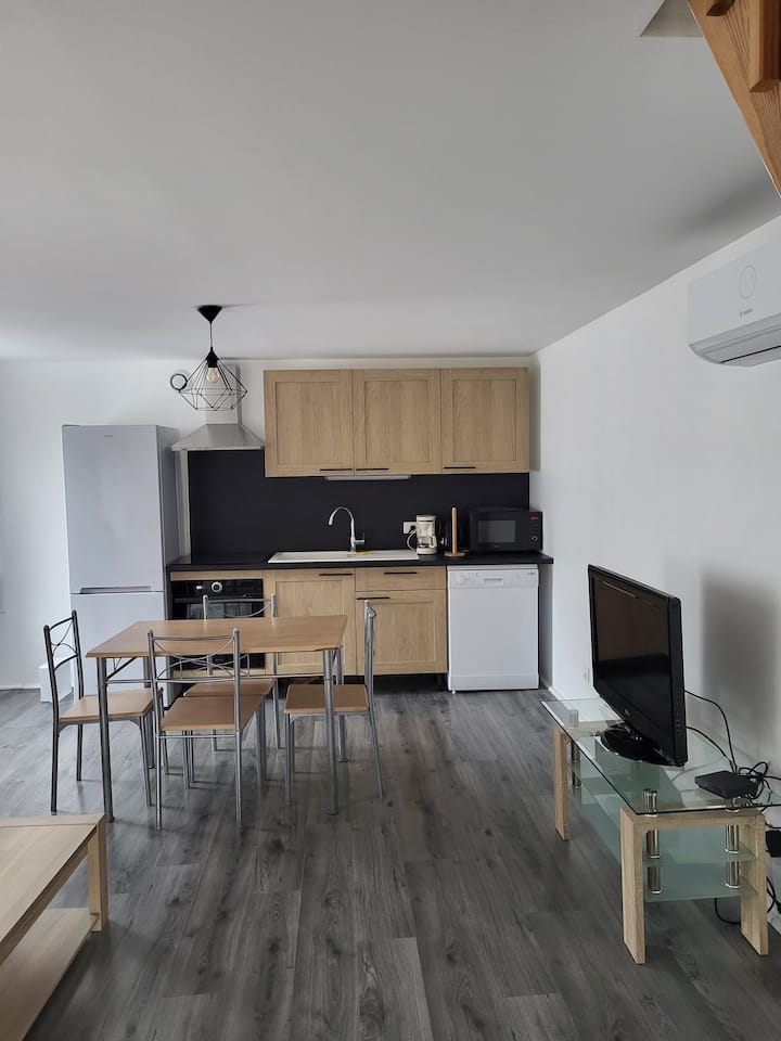 フランス、オーヴェルニュ・ローヌ・アルプ地域圏、フリュジェール・レ・ミーヌのまるまる貸切の町家・長屋