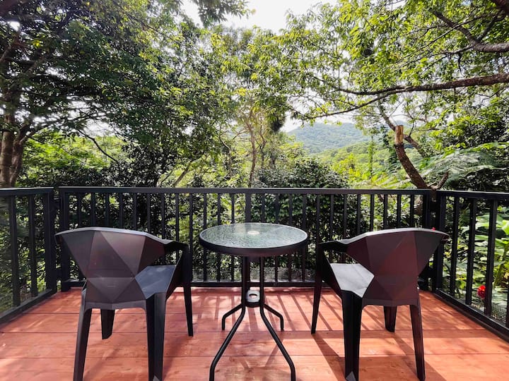 360°がやんばるの緑に囲まれた森の中の宿。カラオケ、バスケット、卓球、プロジェクター、特別体験