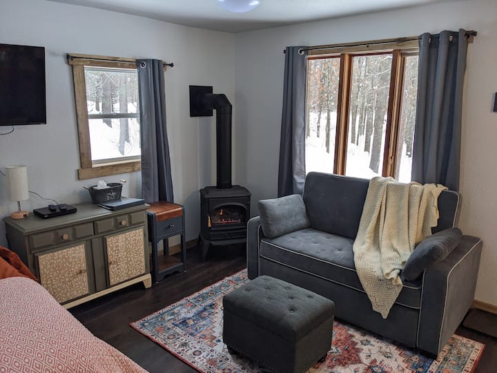 アメリカ合衆国、ミネソタ州、チョウザメ湖のまるまる貸切のログハウス