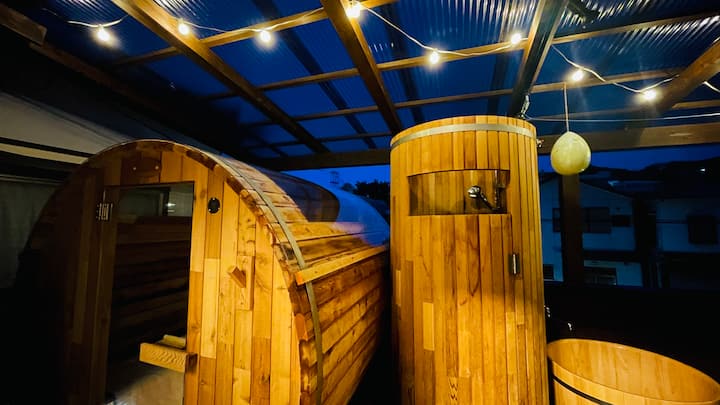 【静岡伊豆バレルサウナ】プライベートヴィラ温泉地宿(4kホームシアター)