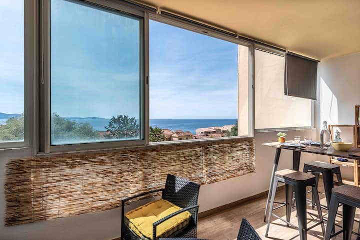 アジャクシオの海の眺望、穏やかな風景の尾根