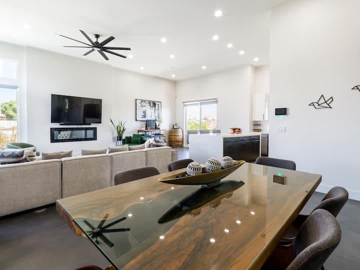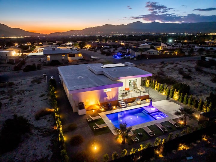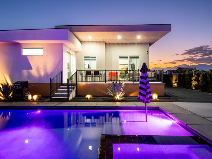 スカイランチへようこそ。Bバーランチにあり、パームスプリングス、パームデザートまで車でわずか15 ~20分、ジョシュアツリーまで車で30分です。 2024年に完成した新築の建物です! 中に入ると、一般的なAirbnbにはない豪華な家具があるので嬉しく思います。 キングサイズベッドを備えたマスタースイートと、お友達やご家族全員が快適にお休みいただける2部屋の客室を完備したオープンフロアの間取りです。 新しく造園された裏庭には、新品の温水塩水プールとジャグジーがあり、アウトドアを楽しむことができます!