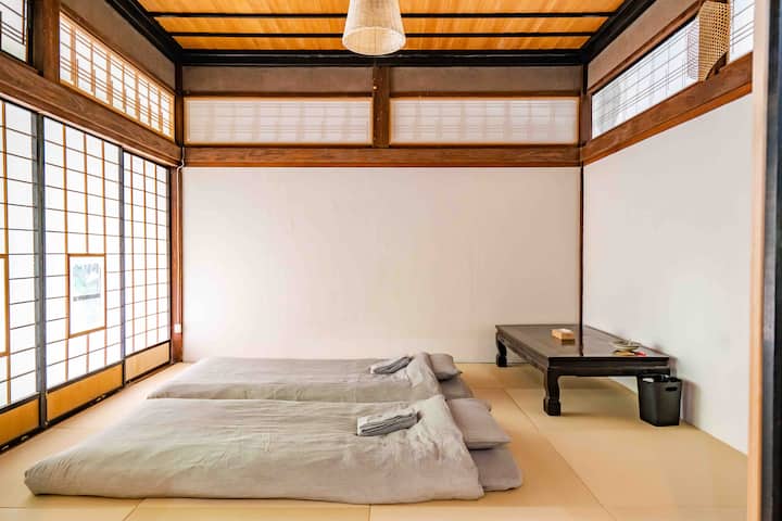 ほとんどのお部屋を自分たちでリノベーションしました。その自分たちというのは、わたしたち夫婦だけではなく、地域の方々や訪れる友人、そして全国から集まってきた旅人です。みんなで創る、そのプロセスと時間を大切に、この宿は2年間かけて完成しました。古民家をどうにか残し、活用したい!その想いに集まって、共に作業に関わってくれたみんさんとの時間はこの宿のいちばんの魅力だと思います。宿泊に訪れる方々には、できあがった宿を堪能していただくと共に、できあがるまでの歴史、ストーリーを感じていただけたらうれしいです。