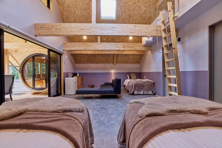 【河口湖駅送迎あり】屋内BBQ/サウナ/最大8名/ペット可/焚き火体験(Amethyst)
