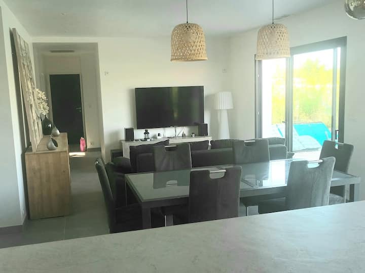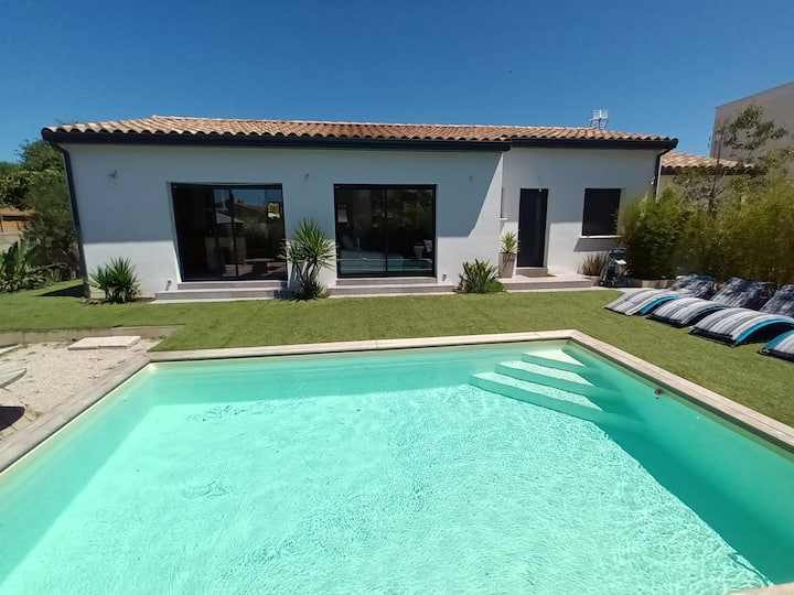 カマルグの中心部にあるプライベートプール付きヴィラ。