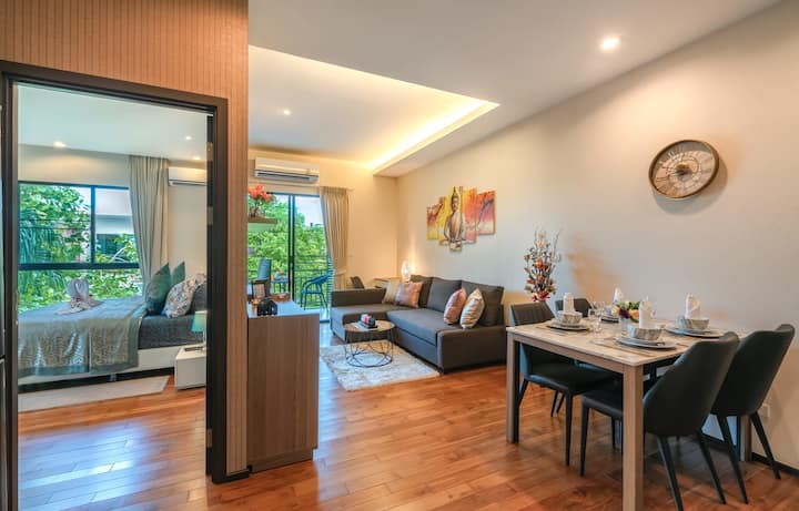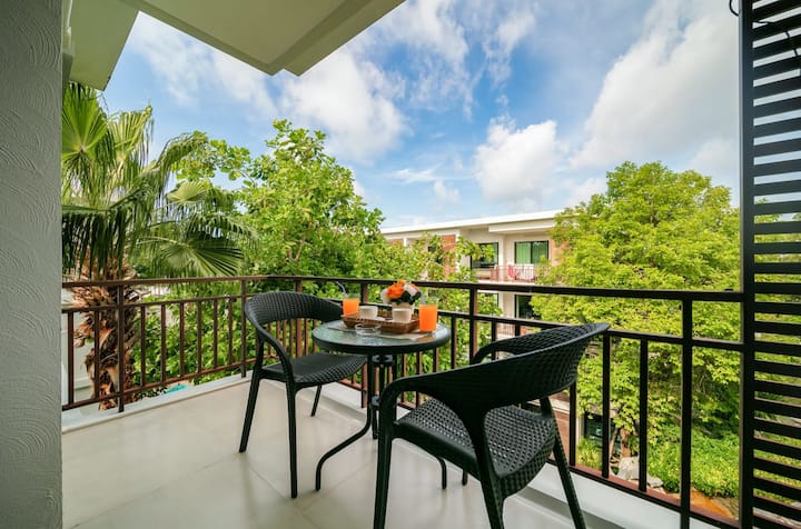 当コーナーアパートは4階の最上階にあり、プーケット休暇を過ごすゲストのためにデザインされています。 2人用のキングサイズベッド&引き出し式ソファベッドがあり、カップルやファミリーにもぴったりのアパートです! 休暇中に必要なアメニティ・設備がすべて揃っています:
