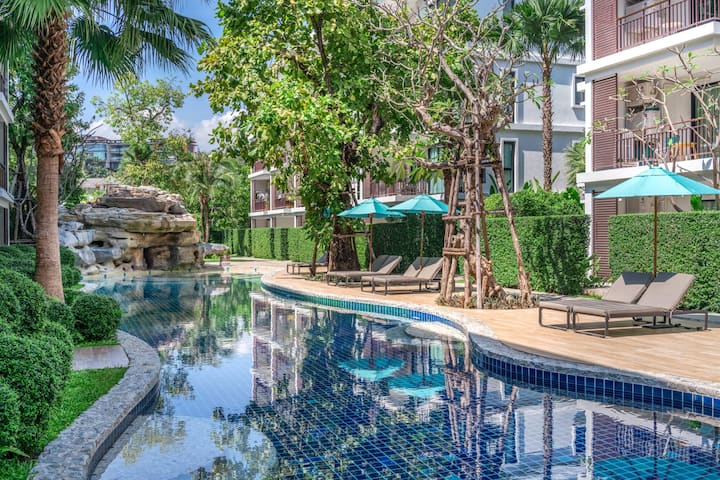 この複合施設は、島の最南端にあるラワイビーチからわずか数メートルのところにあります。 ラワイビーチは、インフラが整備されていることやユニークなシーフードマーケットで有名ですが、水泳やその他のビーチスタイルのアクティビティでは有名ではありません。 湾の水域は浅く、潮に大きく左右されます。 ビーチは、観光客を近くの島に連れて行く多くの地元のボートのホームハーバーになっています。 そのため、地元の子供たちや船に向かう船員を除いて、ラワイビーチの海で泳ぐ人はあまりいません。 多種多様な海岸線のレストランと本当に素晴らしいシーフードマーケットがあるため、ラワイは観光客と地元住民の両方に人気の食事スポットです。 シュノーケリングで有名なヤヌイビーチはわずか1.7 km、車または自転車で3 ~4分、または徒歩約25分です。 多くのメディアリソースによってプーケットで最高のビーチとしてリストされているナイハーンビーチはわずか3 kmの距離にあり、車または自転車で5分以内です。