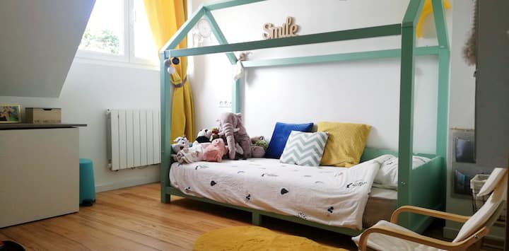 市街地にある庭付きの4ベッドルームの家