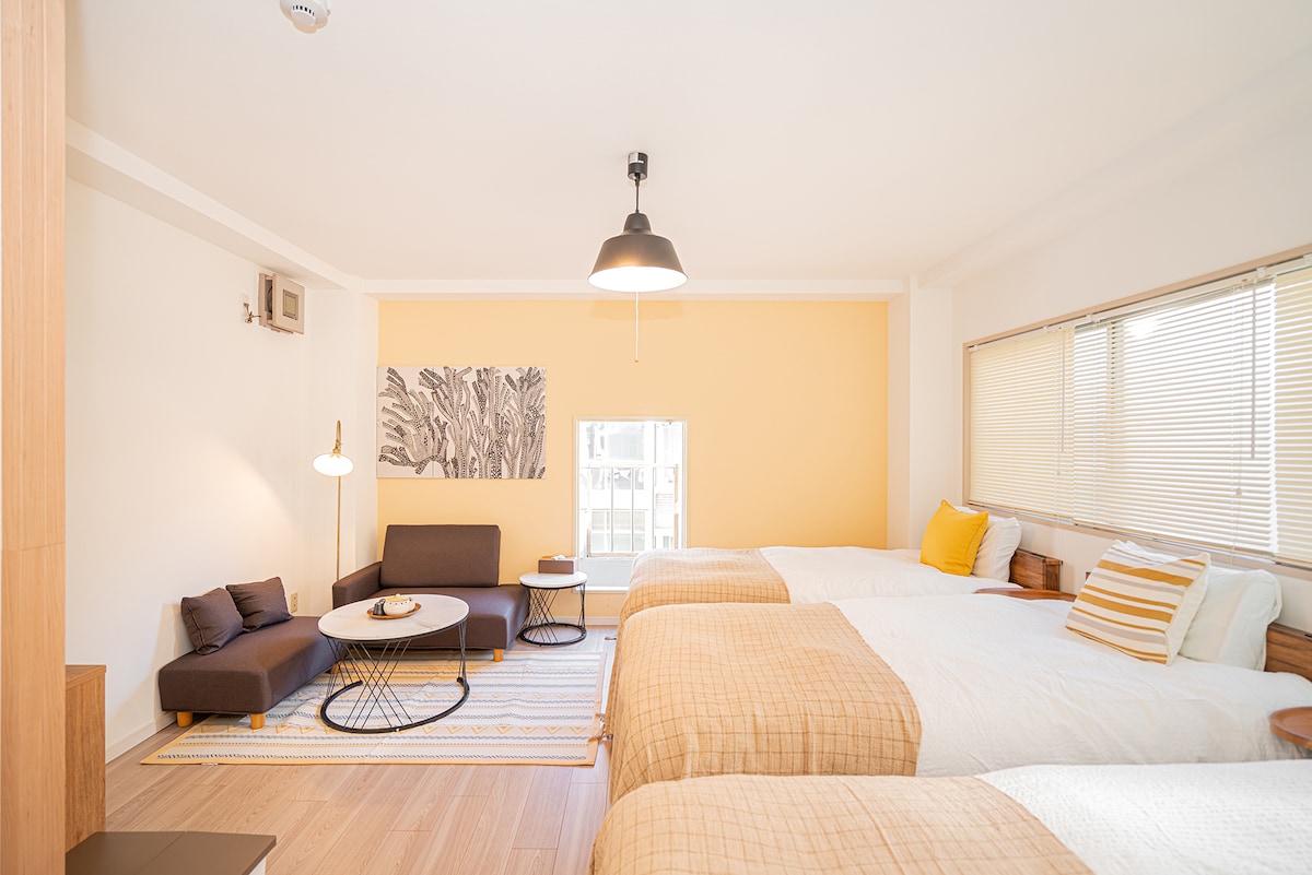 ゲストハウスは、六本木駅(出口1a)より徒歩3分、渋谷へはバスで15分(バス停まで徒歩1分)、新宿駅まで4駅(10分)で都心の中心部に位置しており、超好立地かつアクセスも抜群です。 洗練された外観に、インテリア、快適な寝具(シモンズのマットレスを採用)、ワークスペースも兼ね備えております。 部屋の大きさは、28.5㎡でトイレ・浴室それぞれ独立しております。 浴室にはバスタブも備えられ、街での散策で疲れた体を優しく癒してくれます。 六本木周辺は、大使館が多数(日本にある大使館の半数以上が麻布地区)あり、レストランやスーパーも英語表記があり、滞在をより快適にしてくれます。 ※セブンイレブンまで徒歩30秒です。 ※快適に滞在できる人数は2名様がおススメです。 ※建物内にエレベーター設置あり ※3歳児まで代金不要です ※宿泊人数は、MAX4名様ですが、大人は3名様+子供1名までとなります。(子供は12歳までです) 例1)大人3名+子供1名 例2)大人2名+子供2名 例3)大人1名+子供3名 中心部に位置するこちらのお部屋で、スタイリッシュな滞在をお楽しみください。
