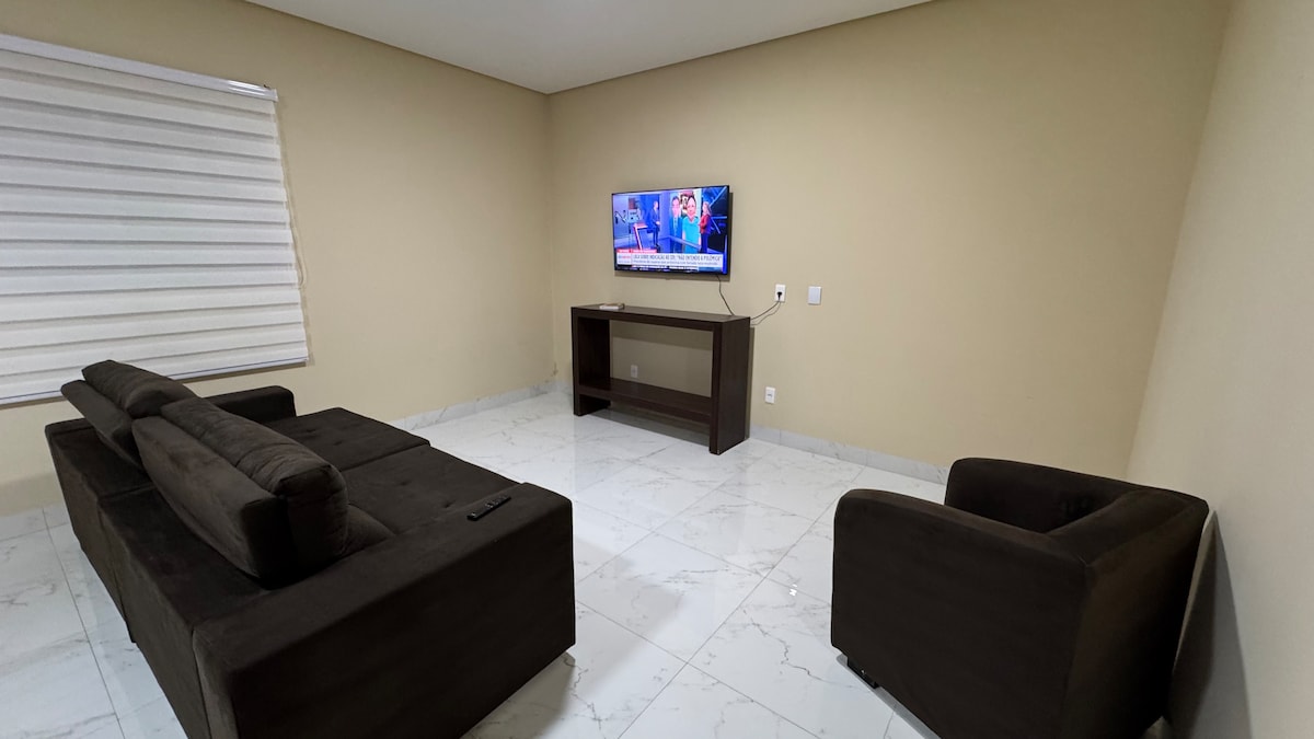 Refúgio na Chapada, perto do centro, ideal para relaxar com conforto e privacidade. • Check-in autônomo, a seu tempo (a partir do horário de entrada) • Garagem privativa • Wi‑Fi rápido • Cozinha equipada para o preparo de suas refeições. • Ar Split 18.000 BTUs: ambiente climatizado em minutos. • Smart TV 43” - Amazon Prime incluso + apps como Netflix, Globoplay - login na sua conta). • Alexa: peça suas músicas favoritas Obs.: Não possui canais abertos de TV, somente "streaming"