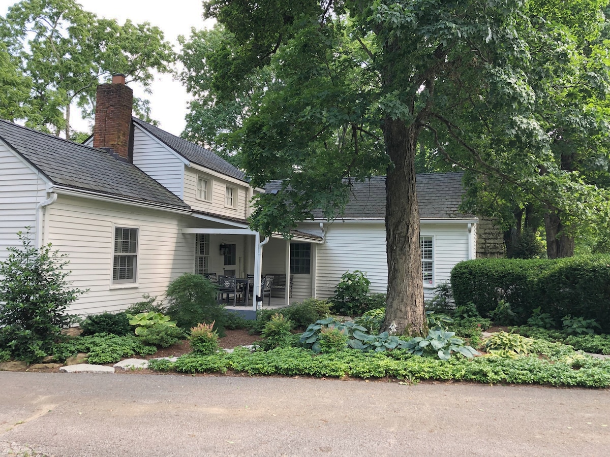 こちらのユニークで静かな宿泊先で、ごゆっくりおくつろぎください。 新しく改装された新しいバスルームとキッチン。私たちは隣の家に住んでいますが、ゲストハウスはプライベートでとても静かです。馬のいる田舎に囲まれ、馬が隣接する畑で草を食べています。2階にクイーンベッド、ロフトにソファクイーン。 エアベッドもご用意しております。 クローゼットスペース、特大バスタブ、インターネット、ストリーミングテレビ。バーボン・トレイルを巡る場合でも、ケンタッキー・ダービーのイベントに参加する場合でも、最高のロケーションです!