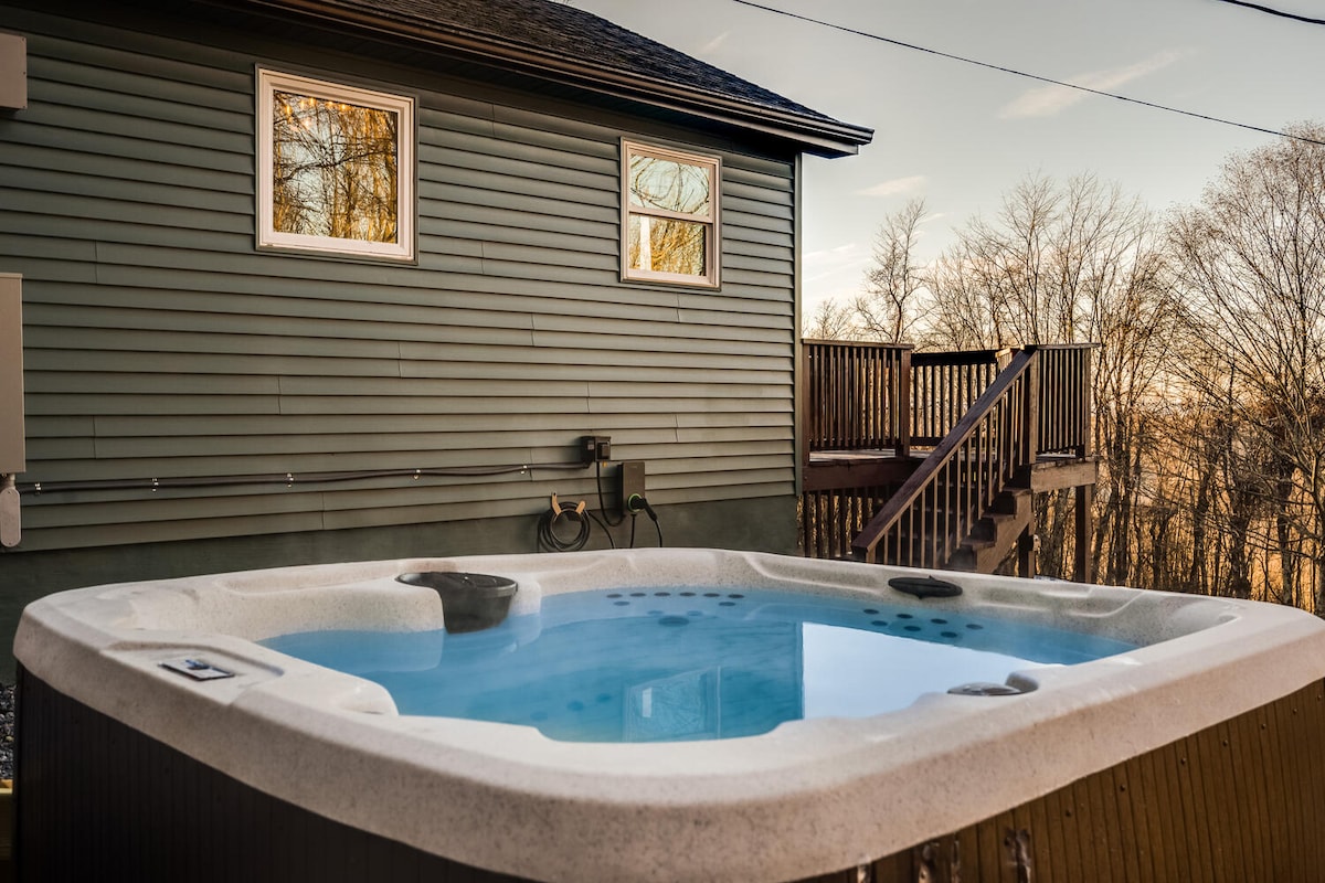 ベッドやロッキングチェアのフロントポーチからコーヒーと広大な山の景色を眺めながら目を覚ましましょう。1日探索した後は、星空の下で温かい浴槽に浸かったり、ゲームセンターで遊んだり、プールでシュートしたり、100インチのスクリーンとリクライニングシアターシートを備えたホームシネマで映画を見たりしましょう。このモダンなキャビンには、豪華なメモリーフォームベッドが6台あります。また、ファイヤーピットと魅力的な屋外スペースも備わっています。ルレーまでわずか12分、シェナンドー国立公園まで25分。カップル、ご家族、お友達でシェナンドアの美しさと山の魔法をお楽しみください!