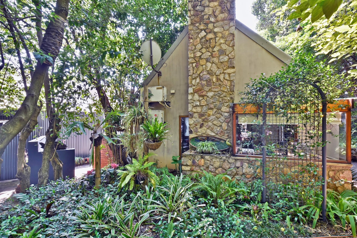 Solar powered battery inverter to escape load-shedding and forget your worries in this spacious, peaceful and centrally located place. A stone's throw from the best restaurants, shopping centres, sports facilities, and hospitals. Let the children play in the jungle gym and lush garden. Relax in the sauna and take a dip in a pool to cool down. Exercise at the gym and play pool. We look forward to welcoming you to our perfectly hidden getaway in the middle of bustling city landscapes.