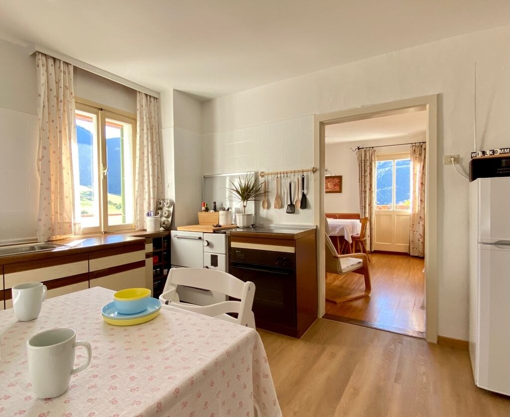ザイスの上に位置するフロレンティンの愛情を込めて改装されたアパート(80平方メートル)、3つのベッドルーム(ダブルベッド2台、二段ベッド1台)、1つのバスルーム、リビングルーム、キッチン。 サントナー、シュラーン、シース・アム・シュラーンの村の素晴らしい景色をお楽しみください! 広々としたテラスでは、日光浴をしたり、食事をしたり、リラックスして一日を終えることができます。 アパートは森の端にあり、ハイキングの出発点として最適です。徒歩数分で、シーザーアルムバーン行きのバス停に到着します。